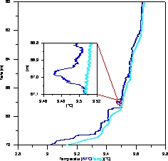 Mikrostruktursonde: Die Mikrostruktursonde bestimmt hochauflösend die Wasserschichtung sowie das Vorkommen kleinskaliger Turbulenz (mm bis cm). Die Sonde ist mit Mikrostruktur- und Turbulenzsensoren (Temperatur, elektrische Leitfähigkeit und Strömungsscherung) sowie Standard-CTD-Sensoren ausgestattet. Sie misst Vertikalprofile sowohl der schichtungsrelevanten Parameter wie Temperatur und Salzgehalt als auch Parameter, die den lokalen Zustand der Turbulenz beschreiben. Informationen über die Turbulenz sind u.a. wichtig zur Bestimmung der Erosion/Resuspension von im Sediment lagernden Nähr- und Giftstoffen als auch für Fragen der Sedimentation/Verlandung von Gewässerabschnitten und Auskolkung.